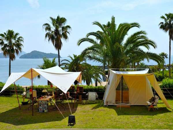 心地よい潮風に椰子の葉が揺れるキャンプ場で、海水浴や釣りなどのレジャーと共に「瀬戸内のハワイ」こと、周防大島でのアウトドアライフの拠点施設です。
