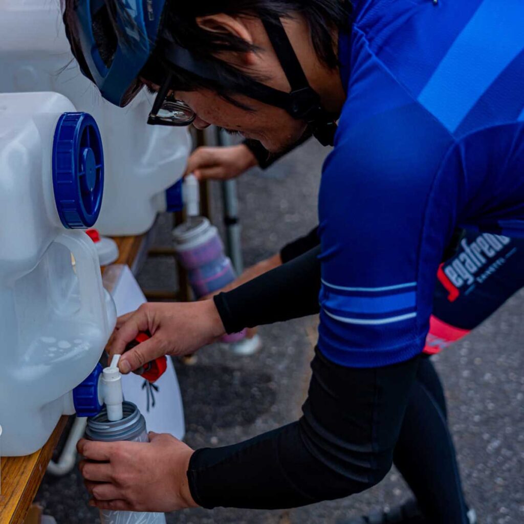 第6回を迎える今大会は、持続可能なイベントを目指し実証実験も行います。 エコな取り組みとして、エイドステーションにおける水とスポーツドリンクの提供用紙コップを廃止します。 環境保全のため、マイボトルの持参にご協力をお願いします。 FacebookX